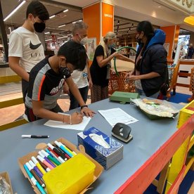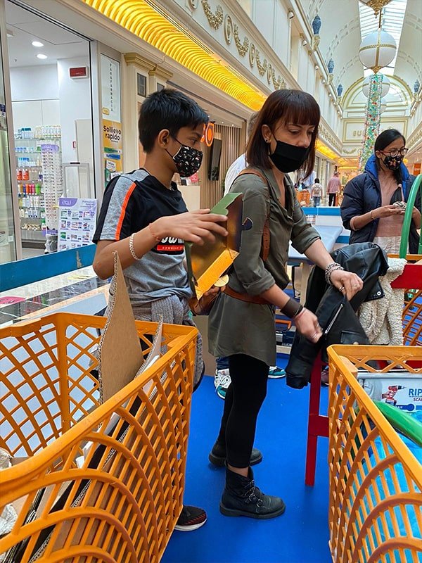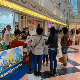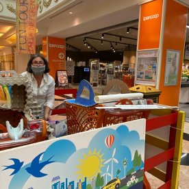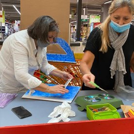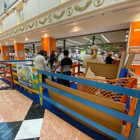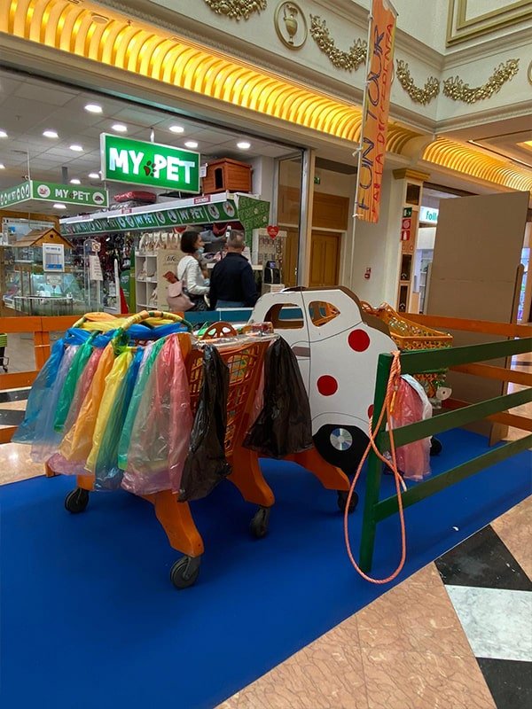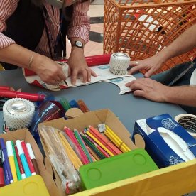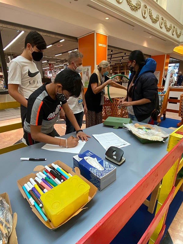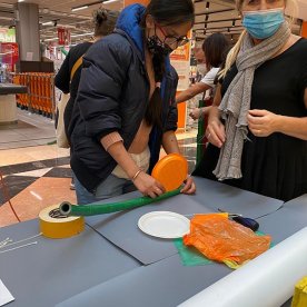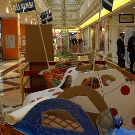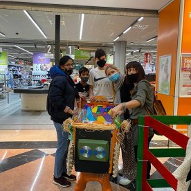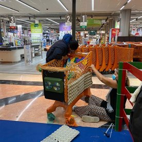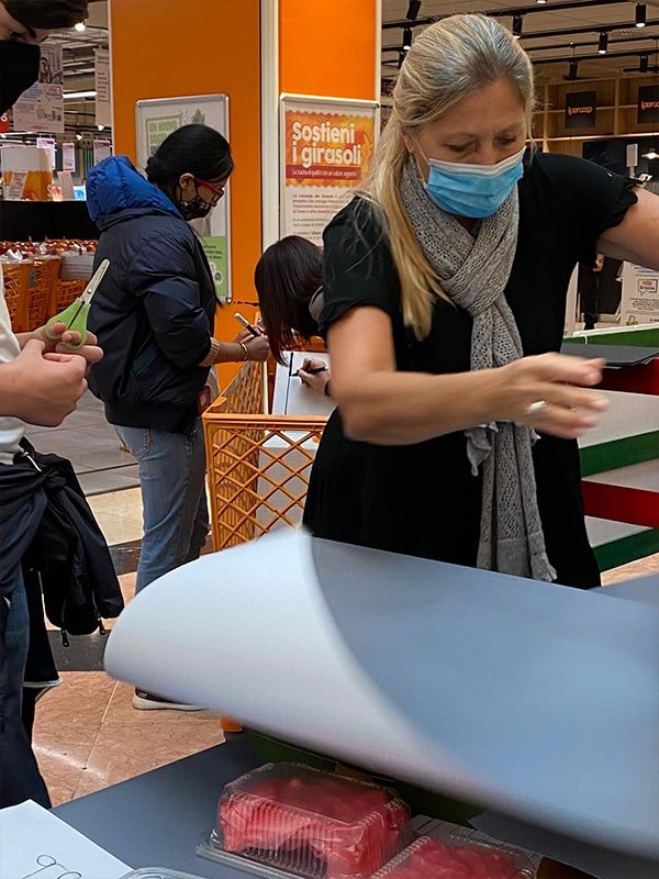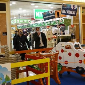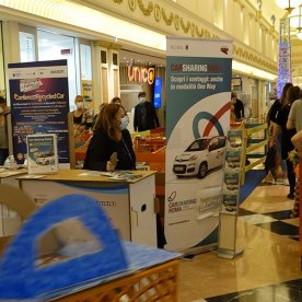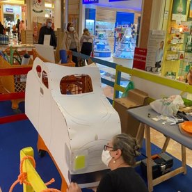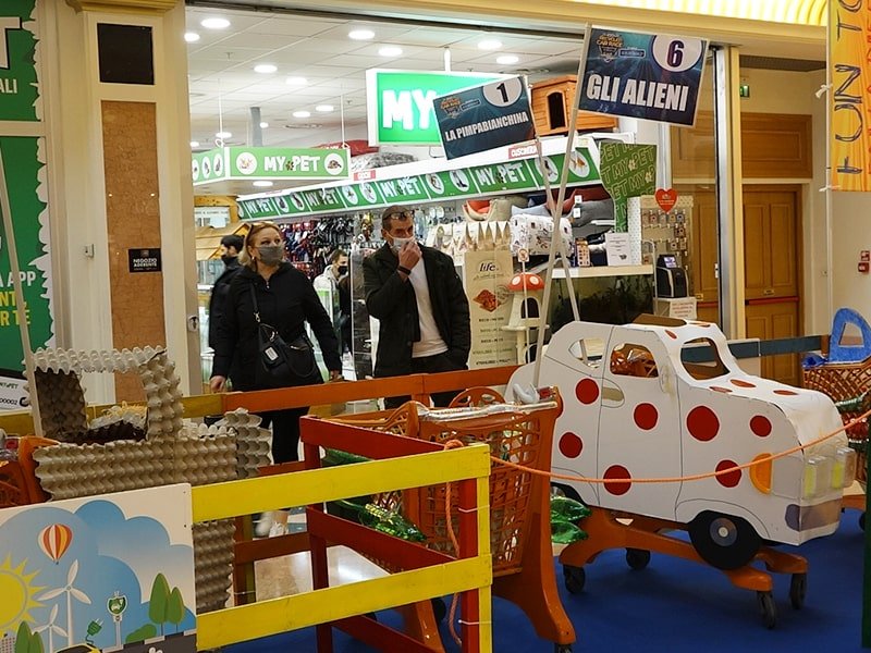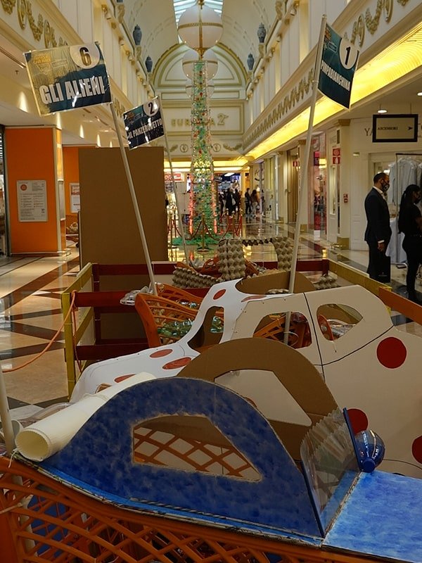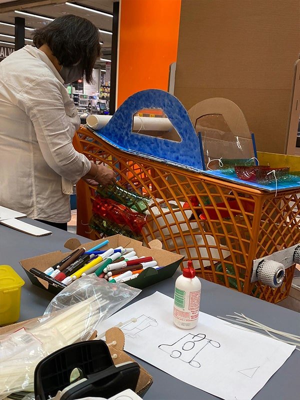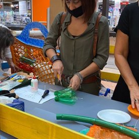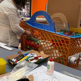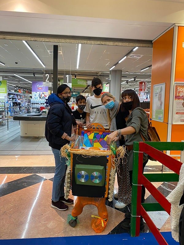 Foto che raccontano il Cantiere delle Recycled Car, il laboratorio dove i Green Team hanno personalizzato e decorato la scocca dei carrelli della spesa realizzati in plastica riciclata della IperCoop di Euroma2 e che hanno poi partecipato alla Recycled Car Race - il Grand Prix delle auto riciclate con trazione ad impatto zero.